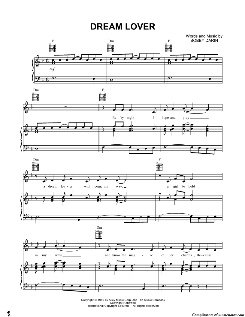 Ev'ry night I hope and pray a dream lover will come my way, a girl to hold in my arms and know the magic of her charms. |