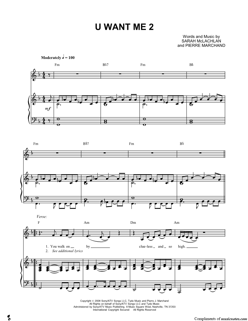 Voice, range: F3-Bb4 Piano Backup Vocals | |