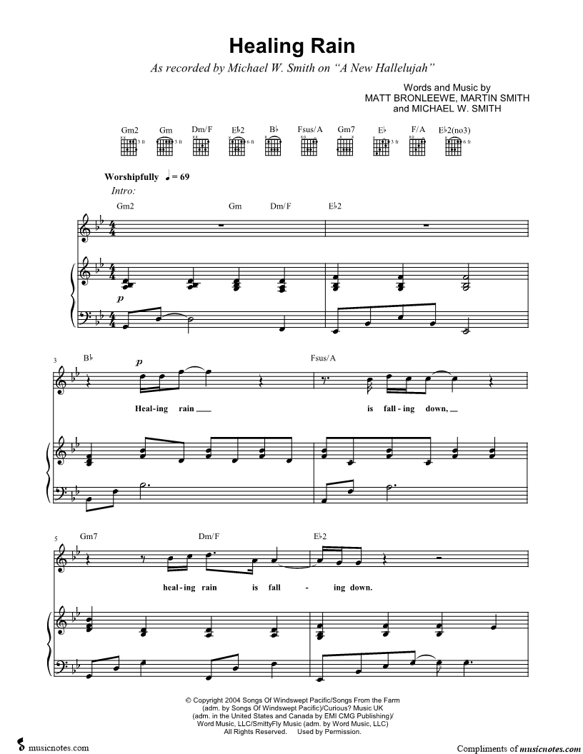 Healing rain is falling down, healing rain is falling down. |