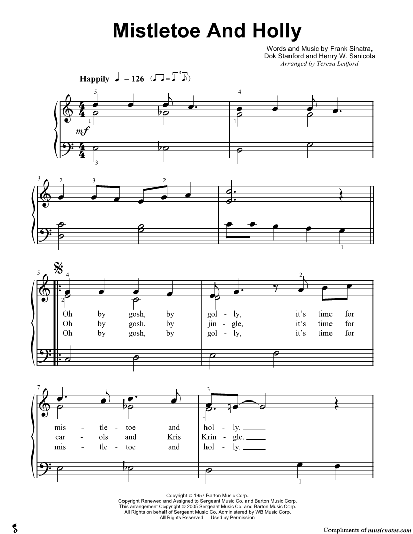 Oh by gosh, by golly, it's time for mistletoe and holly. |