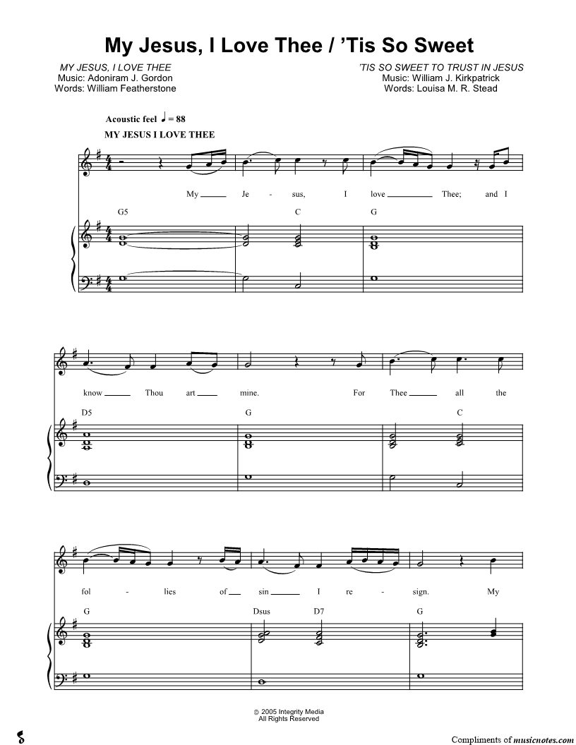 My Jesus, I Love Thee / 'Tis So Sweet |