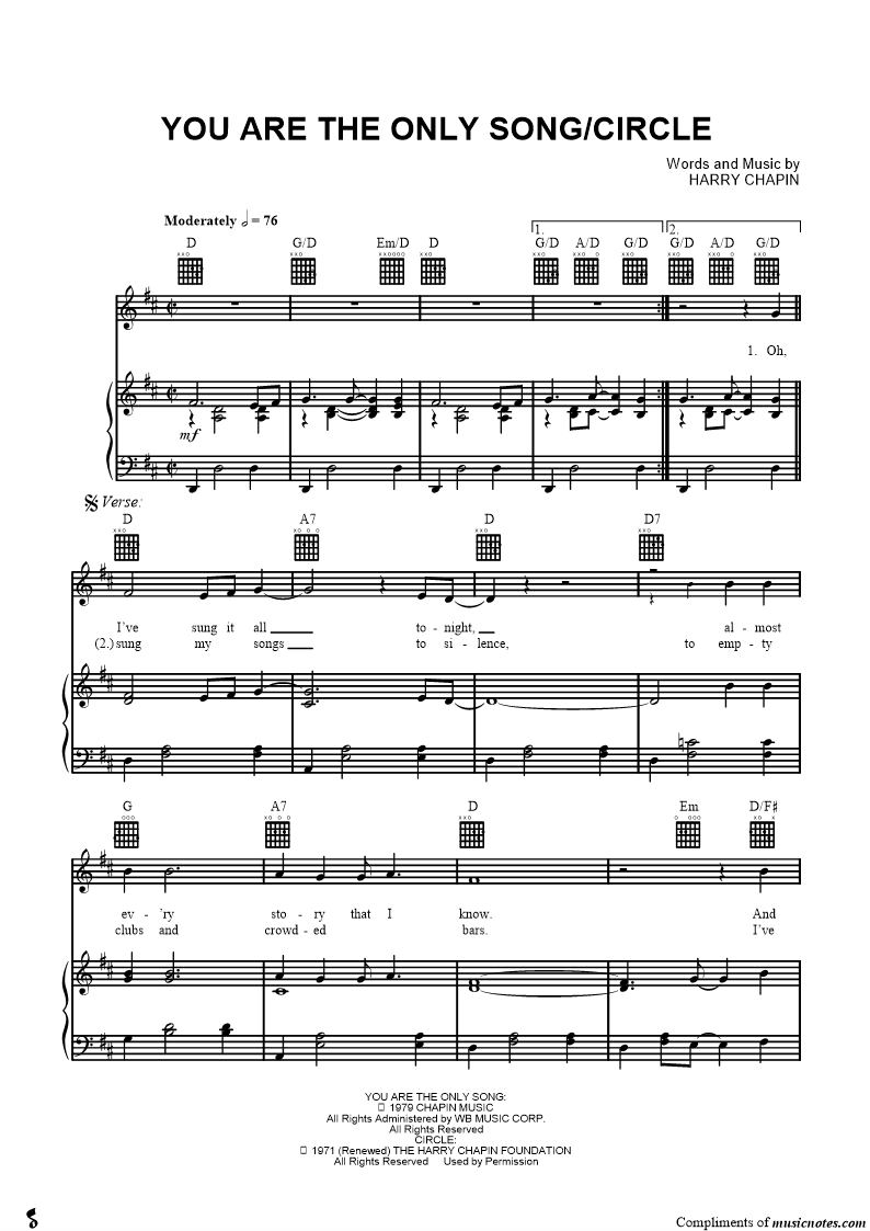 The Harry Chapin Sheet Music Collection |
