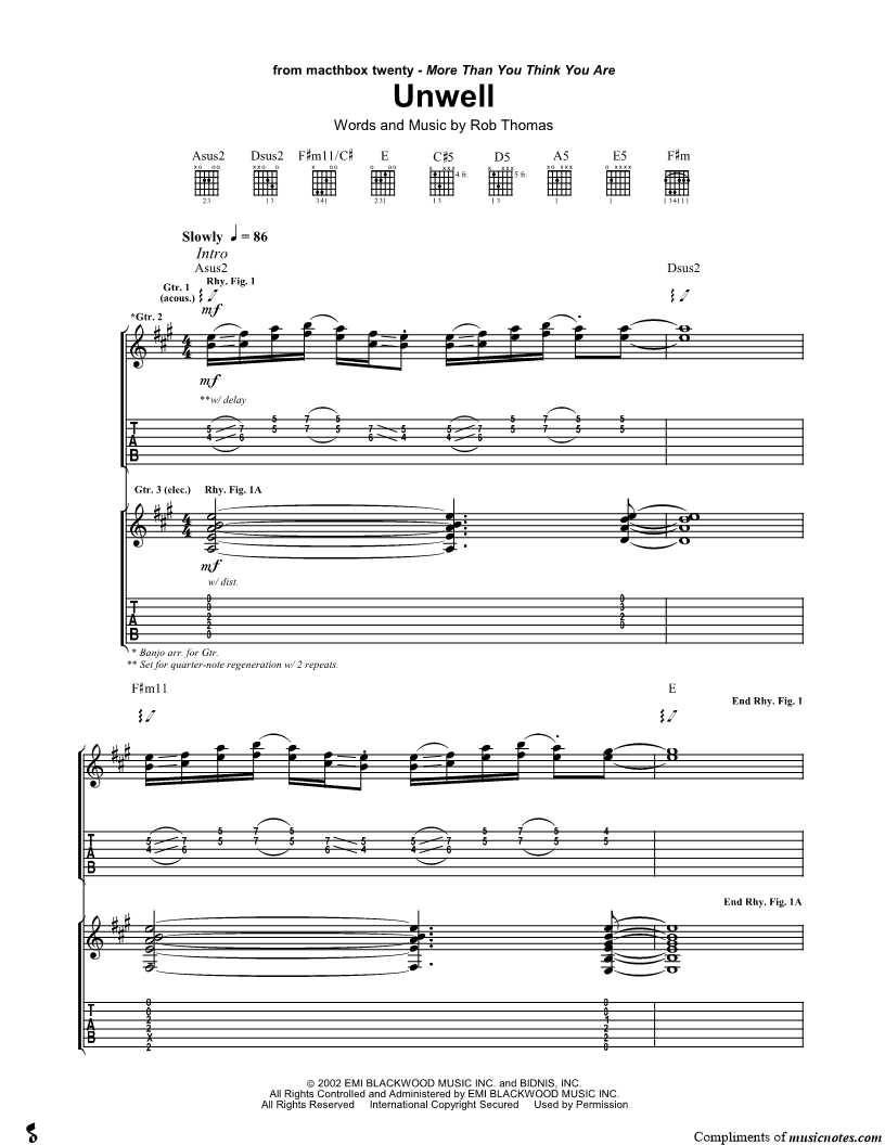 Guitar Tab Guitar/Vocal |