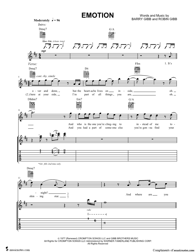 Guitar Tab Guitar/Vocal |