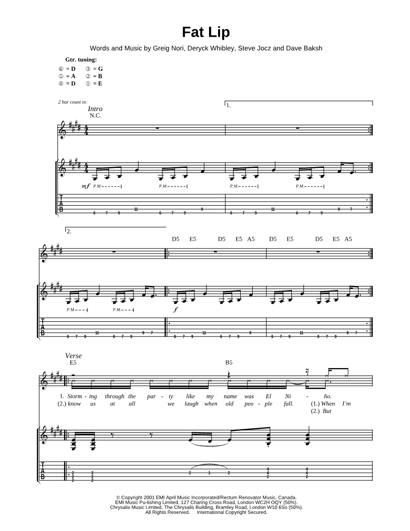 Guitar TAB Guitar/Vocal |