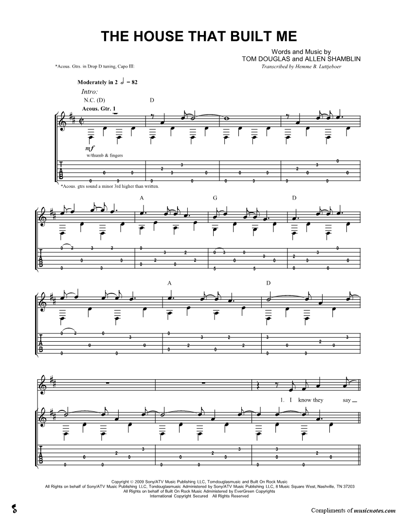 Guitar Tab Guitar/Vocal |