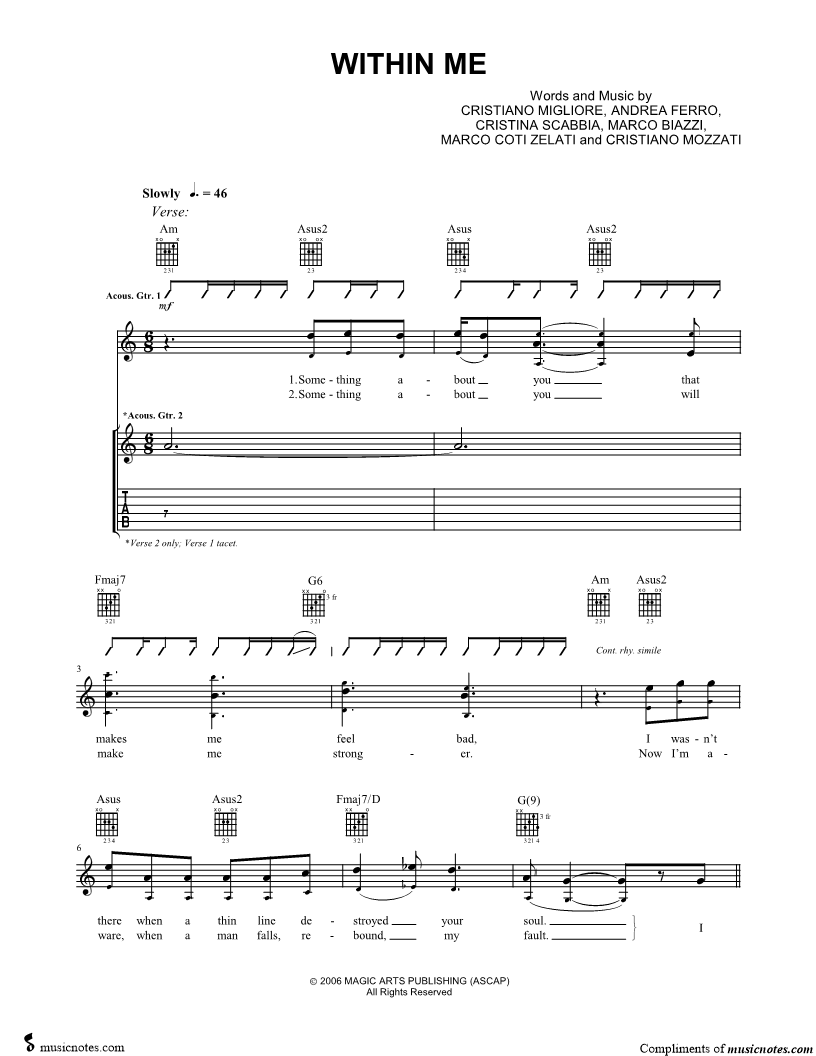 Voice, range: G3-D6 Backup Vocals Acoustic Guitar 1 Acoustic Guitar 2 Electric Guitar 1 Electric Guitar 2 Electric Guitar 3 | |