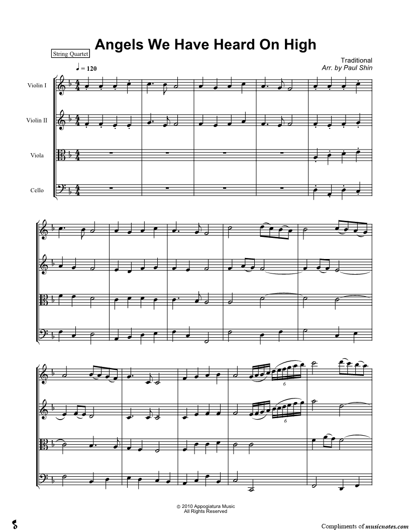 Angels We Have Heard on High - Score (String Quartet) |