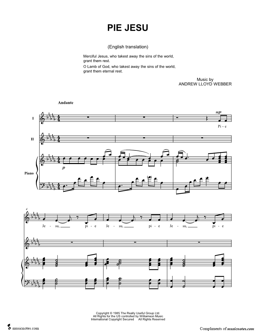 Pie Jesu, pie Jesu, pie Jesu, pie Jesu, qui tollis peccata mundi, dona eis re quiem, dona eis requiem. |