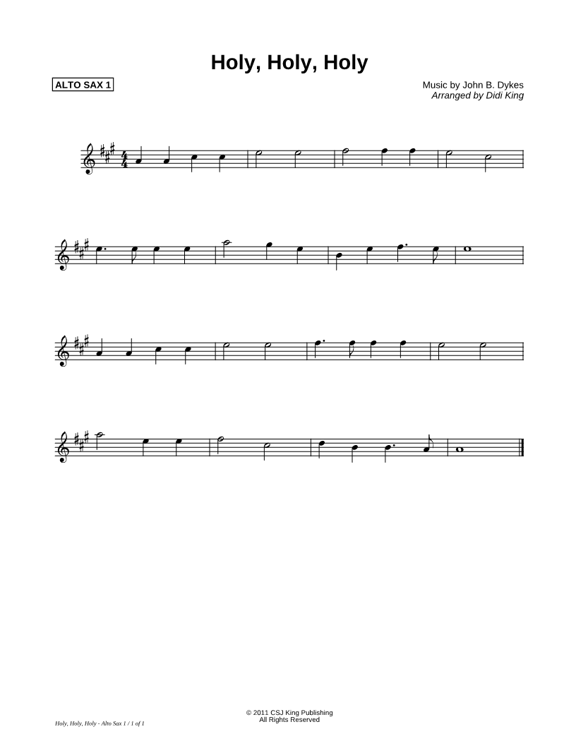 Holy, Holy, Holy - Alto Sax 1 (Saxophone Quartet) |