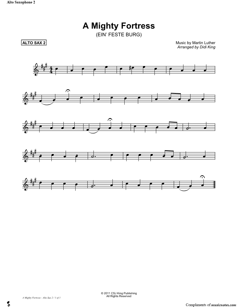 A Mighty Fortress Is Our God - Alto Sax 2 (Saxophone Quartet) |