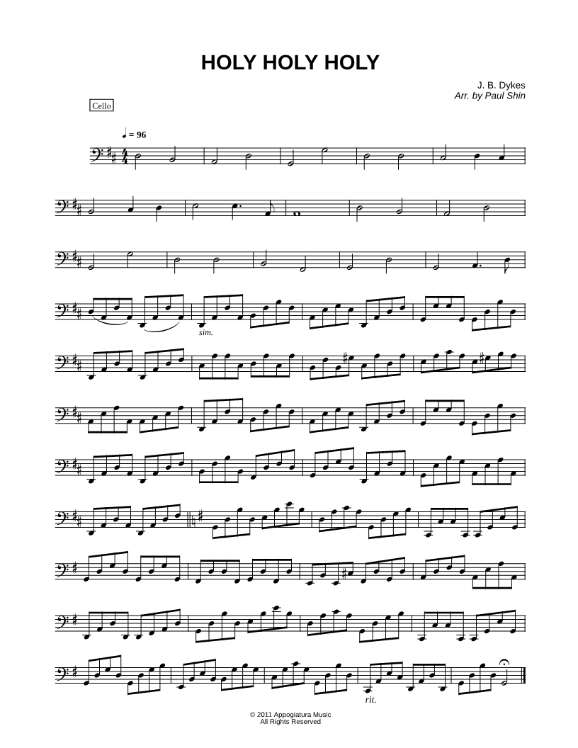 Holy, Holy, Holy - Cello (String Quartet) |