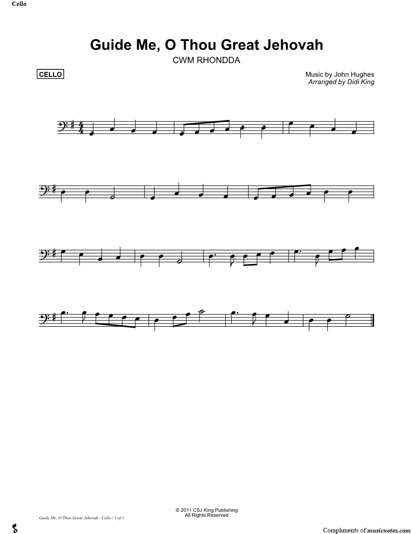 Guide Me, O Thou Great Jehovah - Cello (String Quartet) |