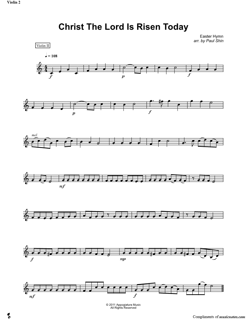 Christ the Lord Is Risen Today - Violin 2 (String Quartet) |