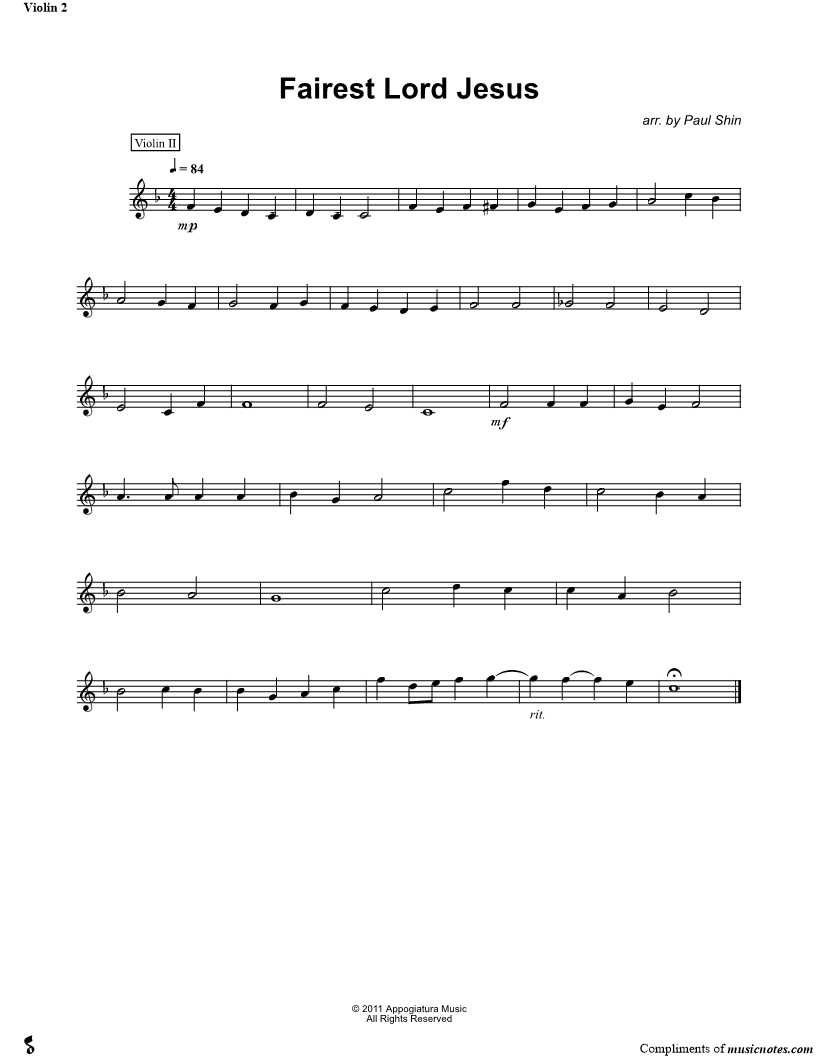 Fairest Lord Jesus - Violin 2 (String Quartet) |