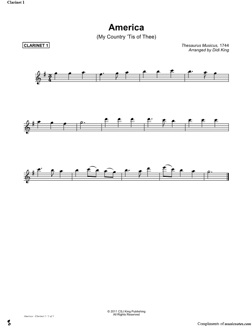 America (My Country 'Tis of Thee) - Clarinet Part 1 (Clarinet Quartet) |