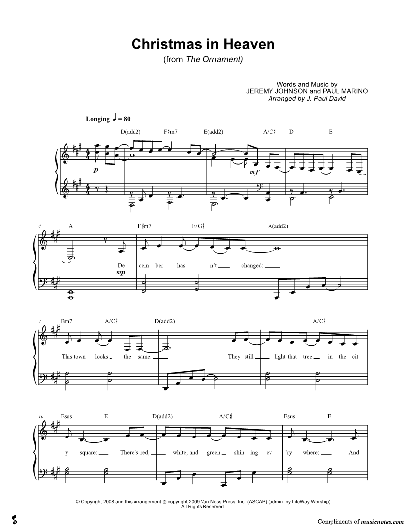 "I love this song! It is a gorgeous arrangement of Christmas In Heaven. Although, if you ar..." Read reviews