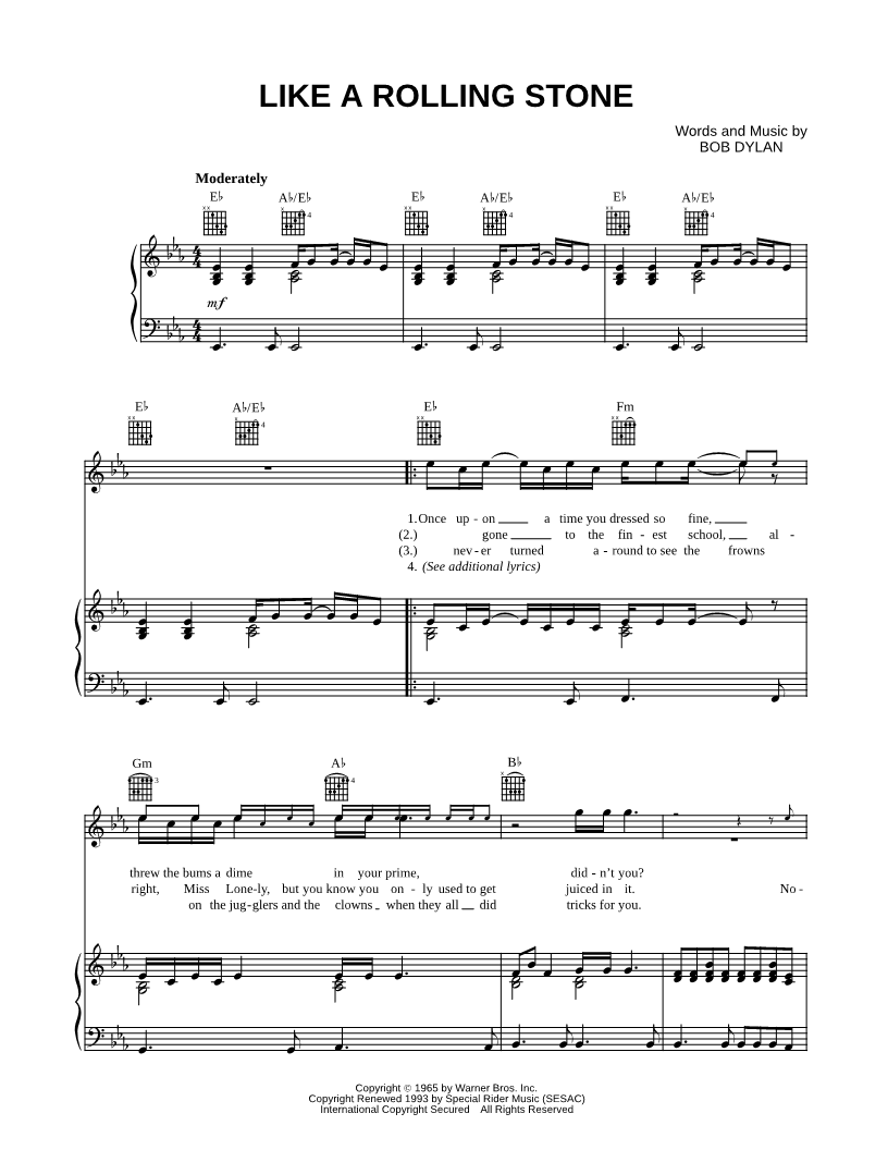 Once upon a time you dressed so fine, threw the bums a dime in your prime, didn't you? |
