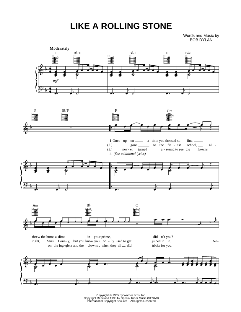 Once upon a time you dressed so fine, threw the bums a dime in your prime, didn't you? |