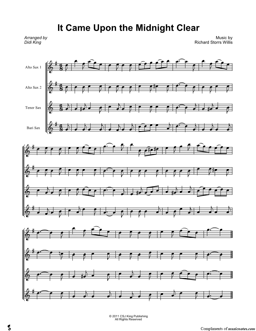 It Came Upon a Midnight Clear - Score (Saxophone Quartet) |