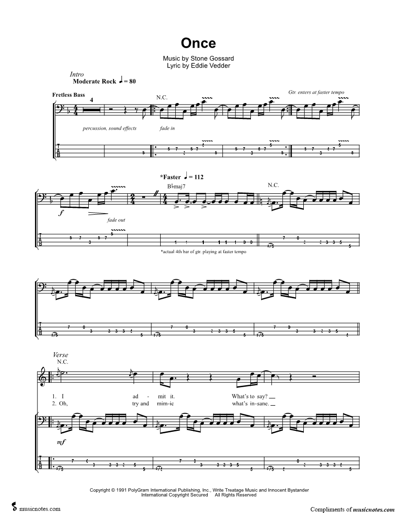 Bass Tab Bass/Vocal/Chords |