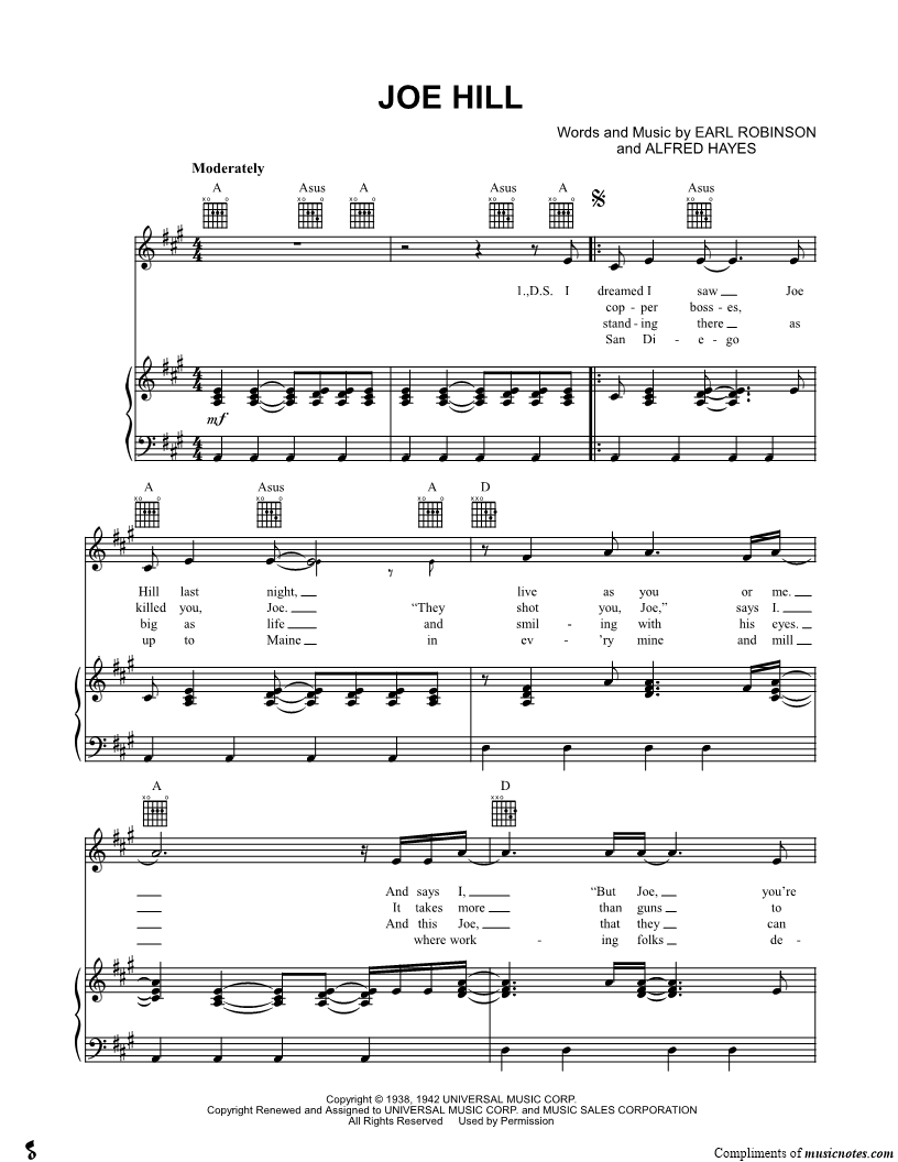 I dreamed I saw Joe Hill last night, live as you or me. |
