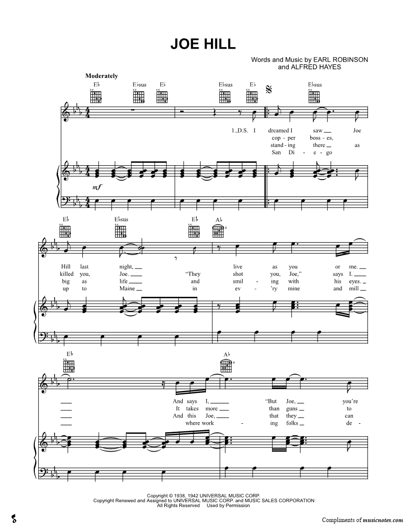 I dreamed I saw Joe Hill last night, live as you or me. |