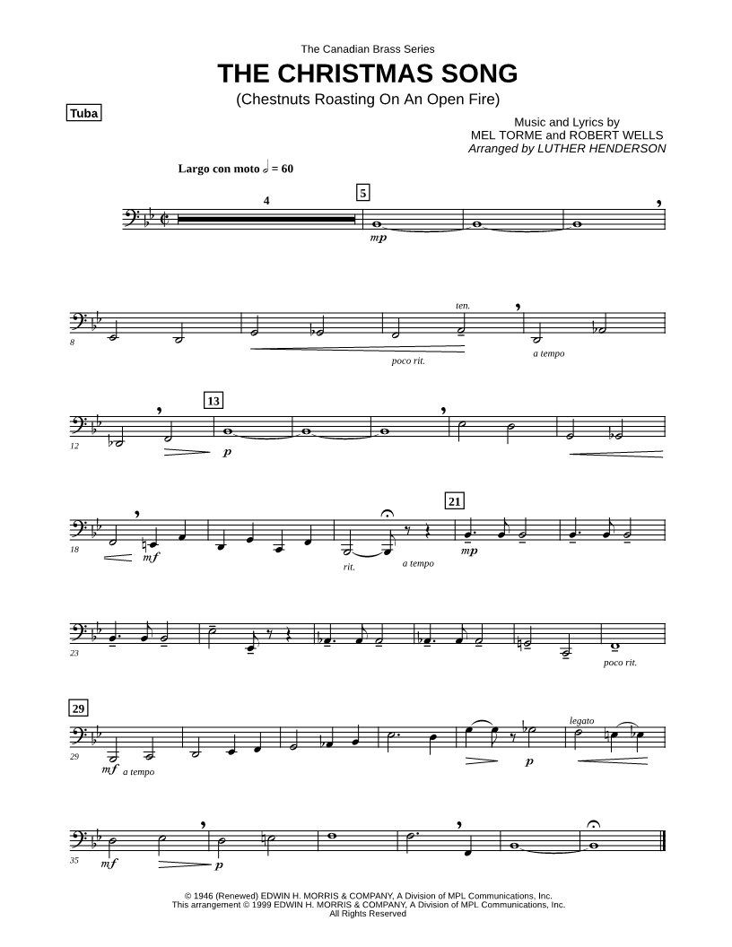 The Christmas Song (Chestnuts Roasting on an Open Fire) - Tuba Part (Brass Quintet) |