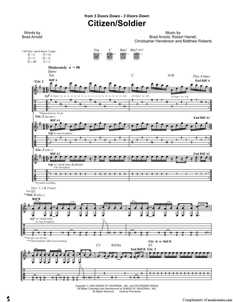 Voice, range: B3-D6 Guitar 1, range: E3-E6 Guitar 2 Guitar 3 Guitar 4 Guitar 5 Guitar 6 Guitar 7 Guitar 8 Guitar 9 Guitar 10 Guitar 11 Backup Vocals | |