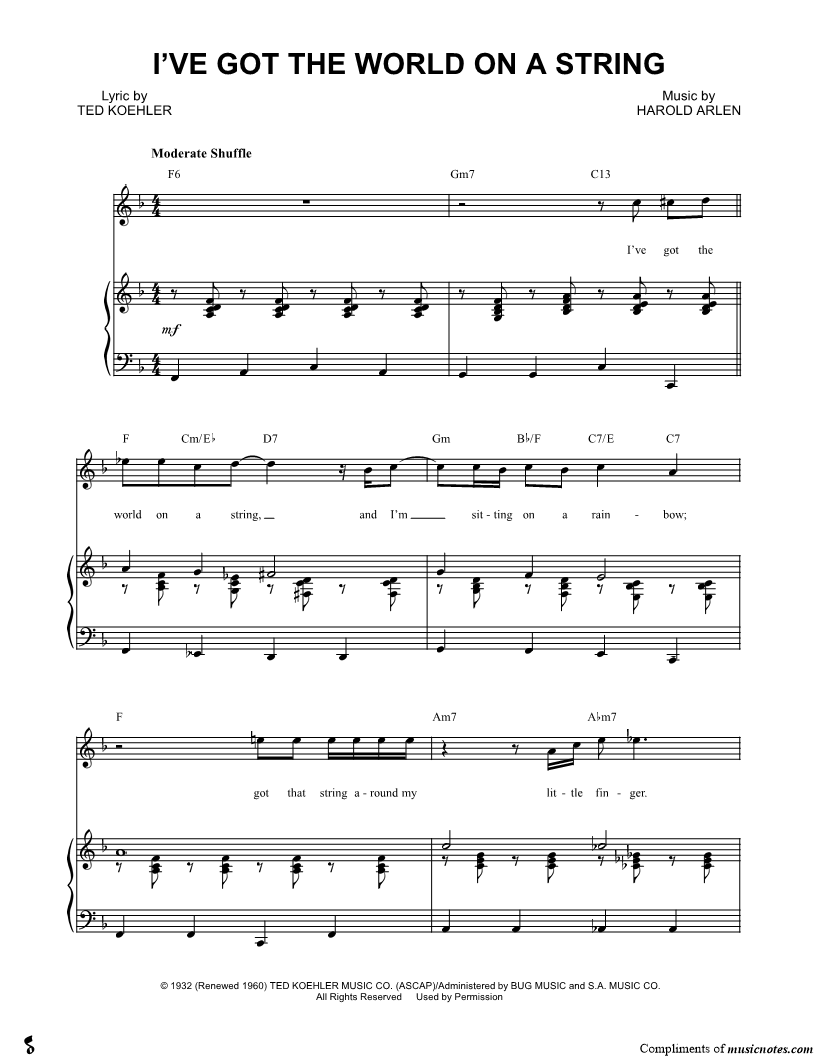 I've got the world on a string, and I'm sitting on a rainbow; got that string around my little finger. |
