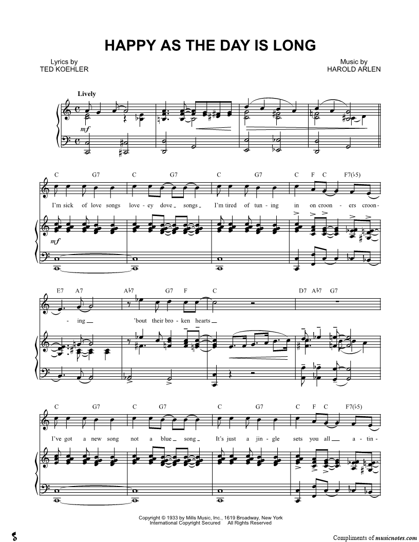 I'm sick of love songs loveey dove songs I'm tired of tuning in on crooners crooning 'bout their broken hearts I've got a new song not a blue song It's just a jingle sets you all atingle ev'ry time it starts the words |