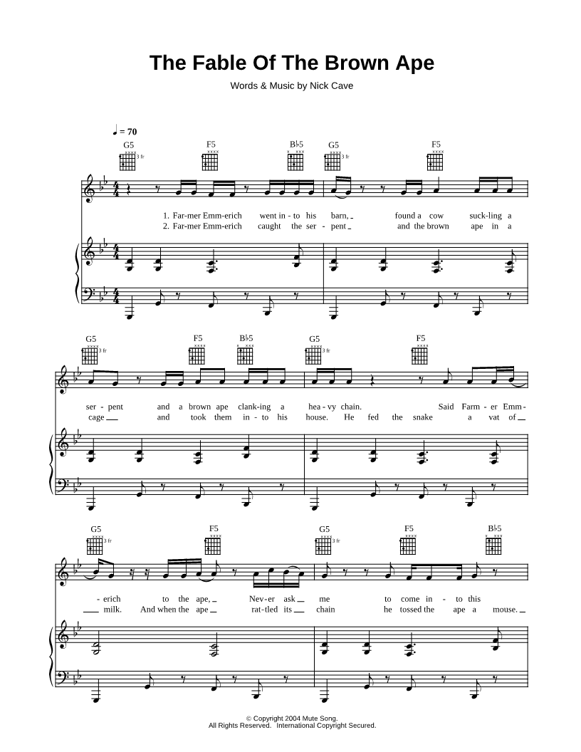 Musicnotes sells a wide variety of digital sheet music products including Singer Pros, Beginner Notes, Choral music, Piano Solos, Lead Sheets, Piano/Vocal/Guitar, Solo and Accompaniment, and fretted instrument tablature.