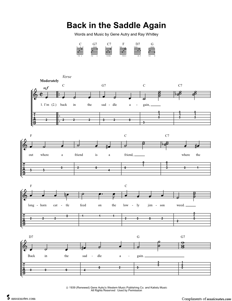 I'm back in the saddle again, out where a friend is a friend, where the longhorn cattle feed on the lowly jimson weed. |