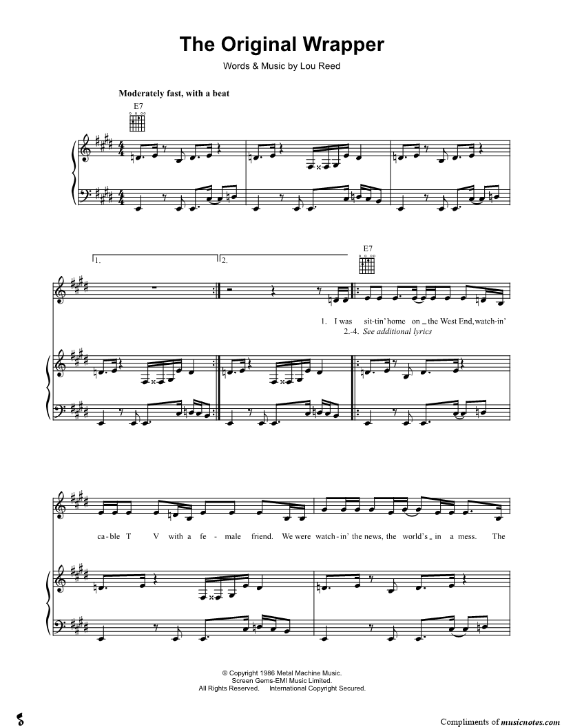 Musicnotes sells a wide variety of digital sheet music products including Singer Pros, Beginner Notes, Choral music, Piano Solos, Lead Sheets, Piano/Vocal/Guitar, Solo and Accompaniment, and fretted instrument tablature.