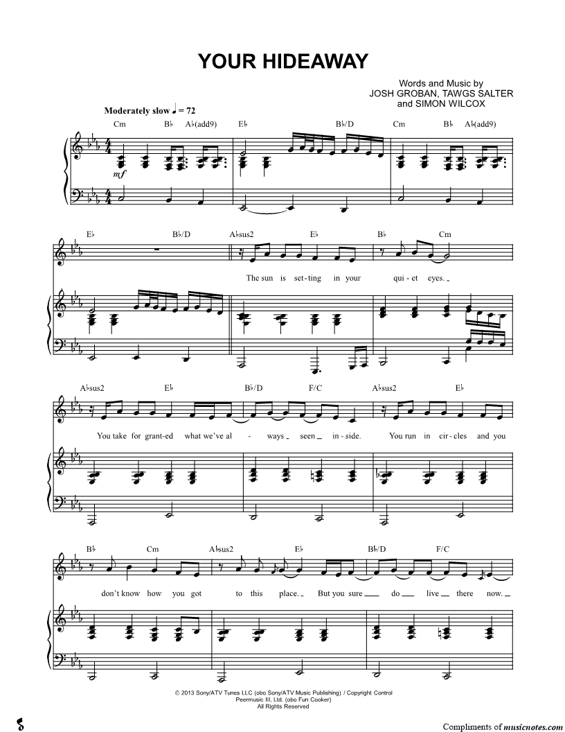 Musicnotes sells a wide variety of digital sheet music products including Singer Pros, Beginner Notes, Choral music, Piano Solos, Lead Sheets, Piano/Vocal/Guitar, Solo and Accompaniment, and fretted instrument tablature.