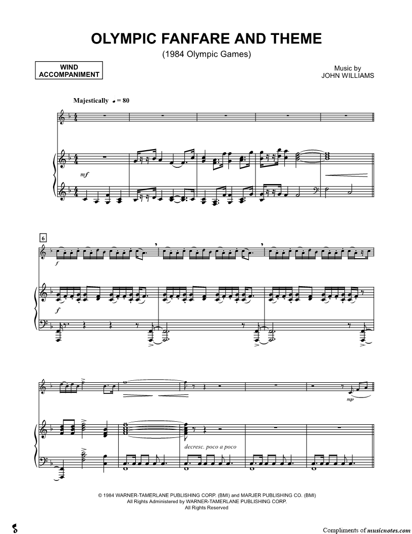 Olympic Fanfare and Theme - Piano Accompaniment (Winds) |