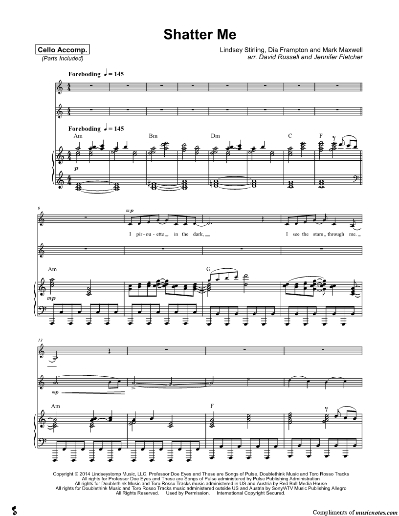 Voice, range: A3-E5 Cello, range: G2-A5 Piano Backup Vocals | |