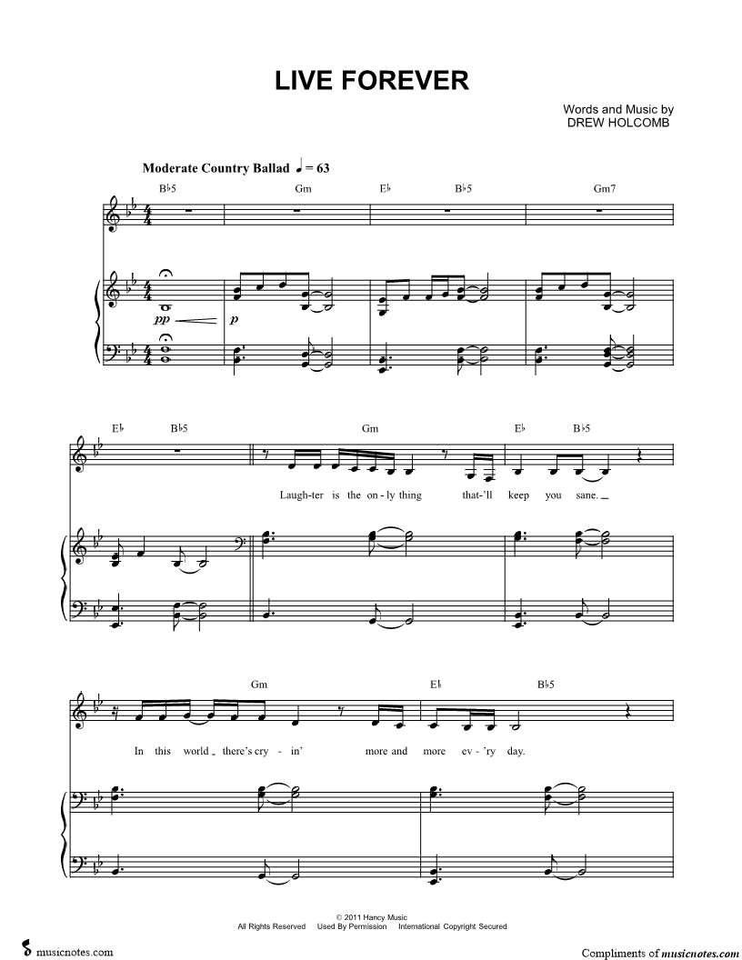 Musicnotes sells a wide variety of digital sheet music products including Singer Pros, Beginner Notes, Choral music, Piano Solos, Lead Sheets, Piano/Vocal/Guitar, Solo and Accompaniment, and fretted instrument tablature.