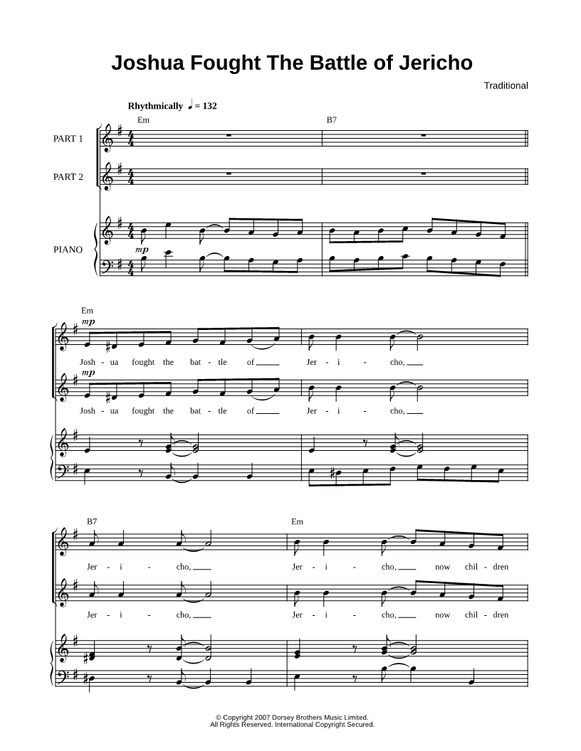 Joshua fought the battle of Jericho, |