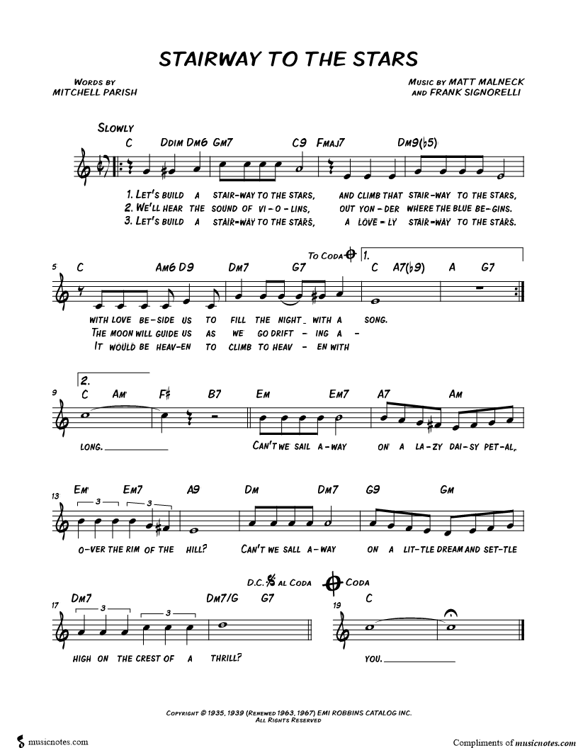 Let's build a stairway to the stars, and climb that stairway to the stars, with love beside us to fill the night with a song. |