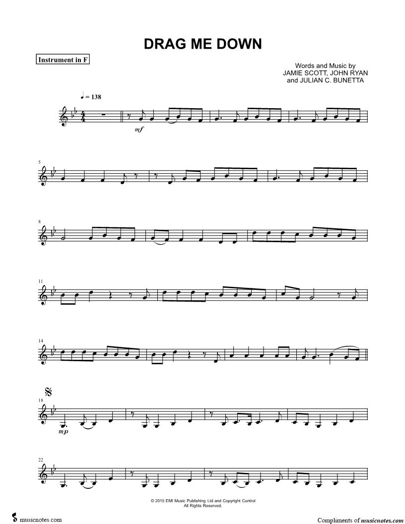 Drag Me Down - F Instrument |