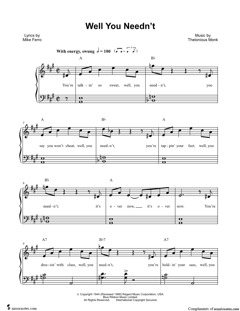 You're talkin' so sweet, well, you needn't, you say you won't cheat, well, you needn't, you're tappin' your feet, well, you needn't; it's over now, it's over now. |