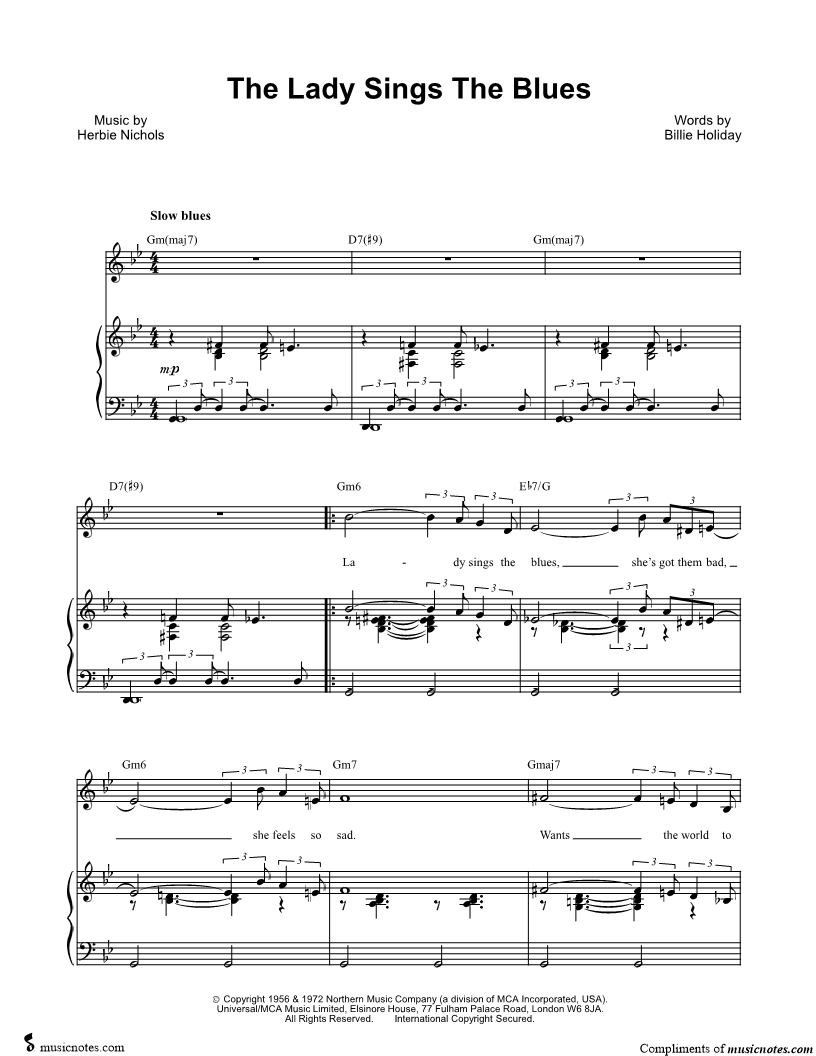 Lady sings the blues, she's got them bad, she feels so sad. |