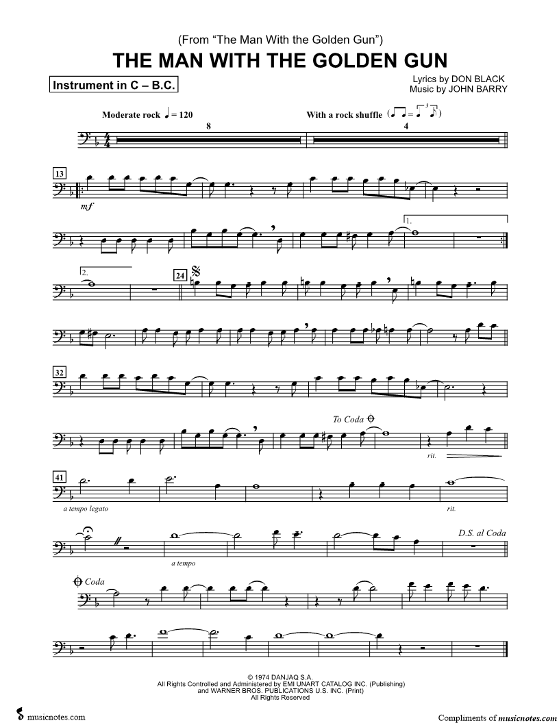 The Man with the Golden Gun - Bass Clef Instrument |