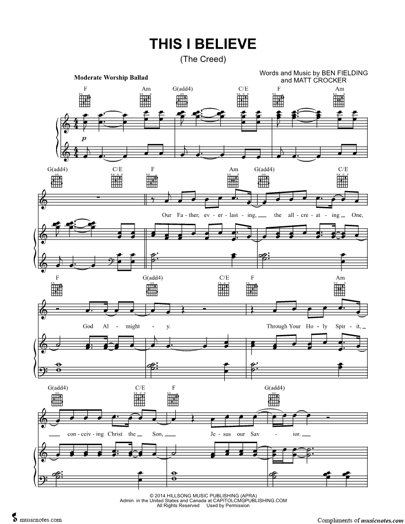 "This is an excellent Musicnotes Sheet Arrangement of This I Believe (The Creed) by Hillson..." Read reviews