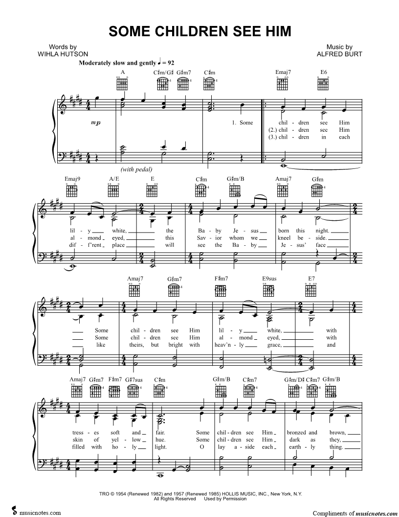 Some children see Him lily white, the Baby Jesus born this night. |