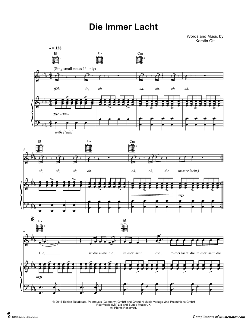 Musicnotes sells a wide variety of digital sheet music products including Singer Pros, Beginner Notes, Choral music, Piano Solos, Lead Sheets, Piano/Vocal/Guitar, Solo and Accompaniment, and fretted instrument tablature.