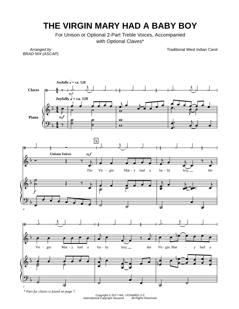 Unison Choir or 2-Part Choir Piano Accompaniment Claves | |