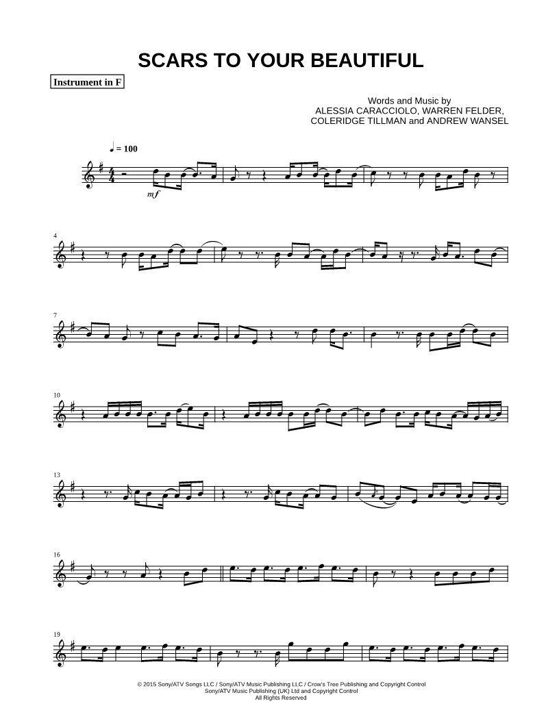 Scars to Your Beautiful - F Instrument |