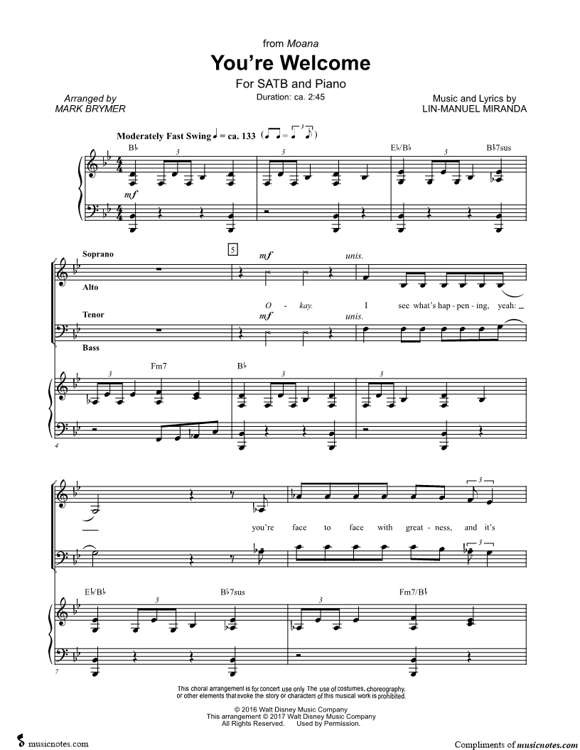 Many of the arrangements on Musicnotes have transpositions available, typically in C Major, as well as 3 sharps and 3 flats. If you do not see your desired key, you can request a transposition by reaching out to Customer Support.